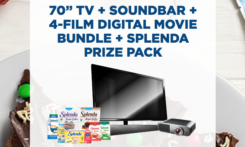 Fill out the short form to enter this new Splenda “Holiday Movie Night” Sweepstakes! Five lucky entrants will score a Christmas movie prize pack worth $100. Plus, the grand prize winners will get a HUGE TV prize pack worth over $880 OR projector prize pack worth $1,000. Get your one-time entry in by December 26th. Winners will be notified via e-mail. Good luck!