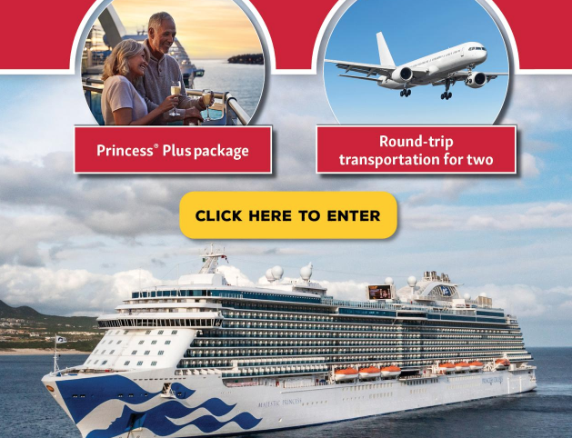 Package includes roundtrip transportation, a cruise valued at $2,900, and the Princess Plus package. Best of luck!