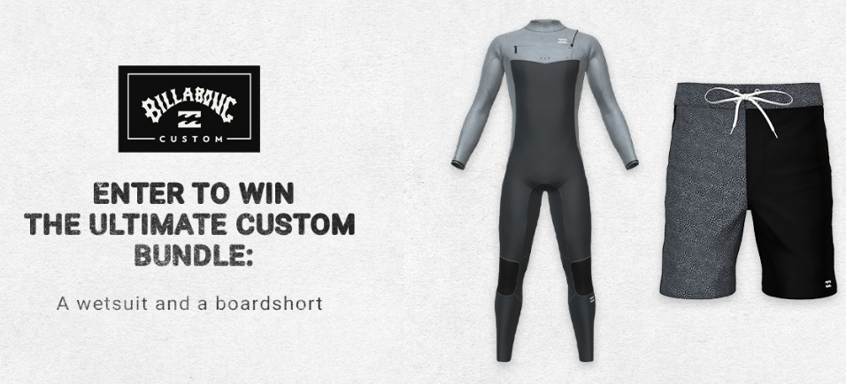 Billabong is giving away custom wetsuit and custom boardshort! Just enter this Billabong “Custom Bundle” Sweepstakes once by April 15th for your shot to win ($495 value). You can’t win if you don’t enter. Best of luck!