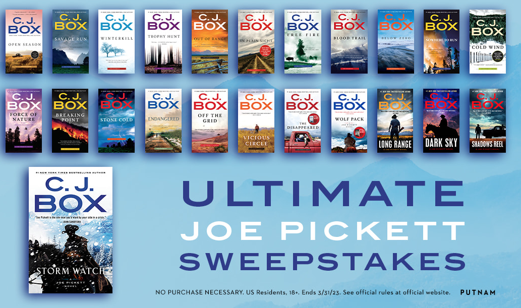 One lucky winner will score a book prize pack from this Penguin Random House “Ultimate Joe Pickett” Sweepstakes! Get your one-time entry in by March 31st. Note that this will subscribe you to their newsletter, but you may unsubscribe at any moment. Good luck!