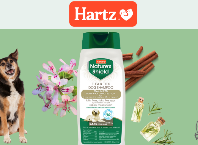 Fill out the short form to possibly claim a Possible FREE Sample of Hartz Nature’s Shield Flea & Tick Dog Shampoo! Maximized botanical flea & tick protection with effective plant-based ingredients – cinnamon, citronella, and rosemary oils. If you qualify, your sample will arrive within 6 weeks.