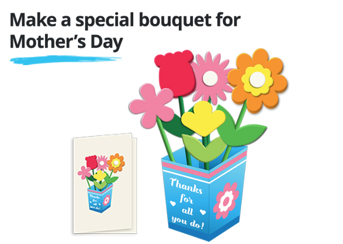 Head on over to your local JCPenney Kids Zone on May 13th between 11am and 12pm, where kids can pick up their own Mother’s Day Bouquet Kit Craft Activity for free! Parents will also get a 10% off purchase coupon valid on that day only.
