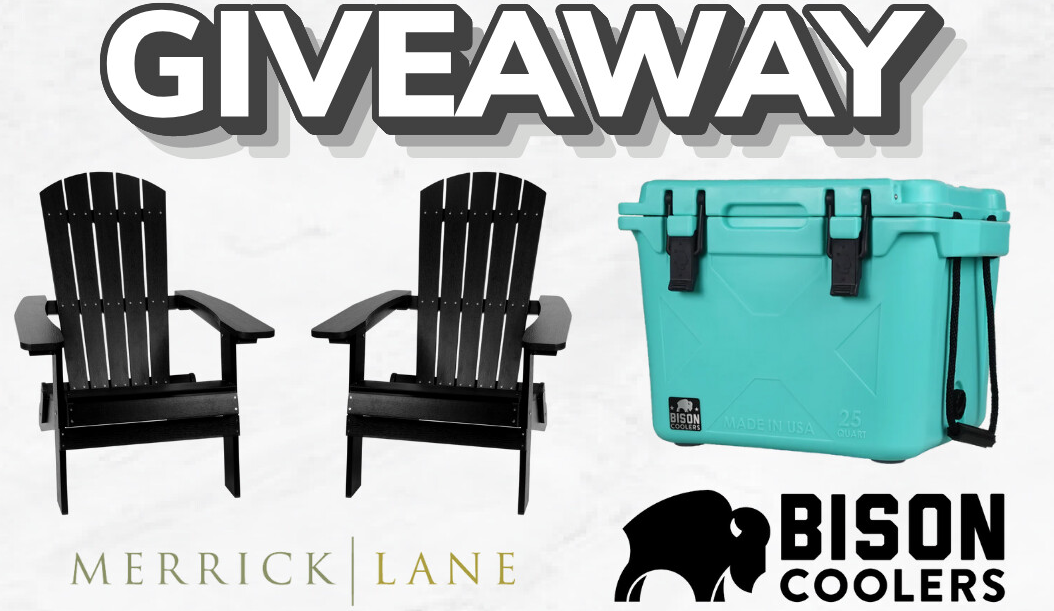 This would be great to win for your yard! One lucky winner will win two Riviera Chairs AND a Bison cooler from this new Merrick Lane Sweepstakes! Get your one-time entry in by August 25th. Good luck!