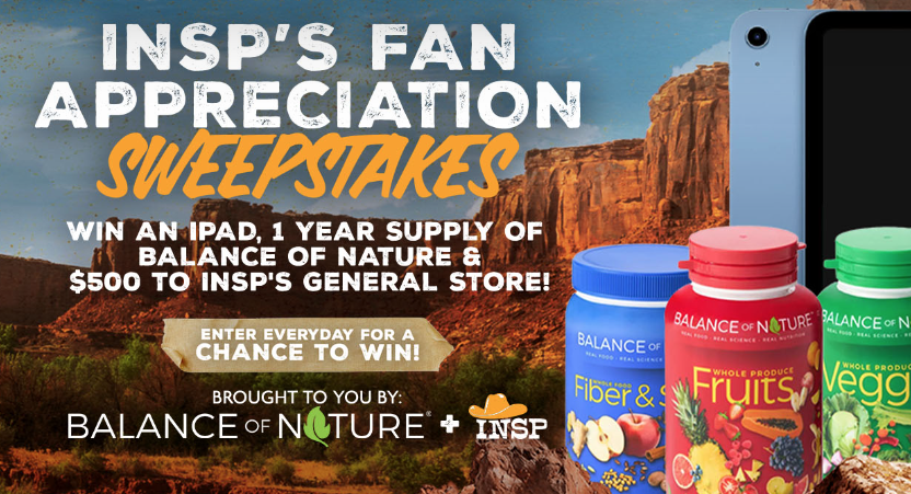 You could win a HUGE prize pack by entering this INSP “Fan Appreciation” Sweepstakes! Enter daily through October 27th. Good luck!