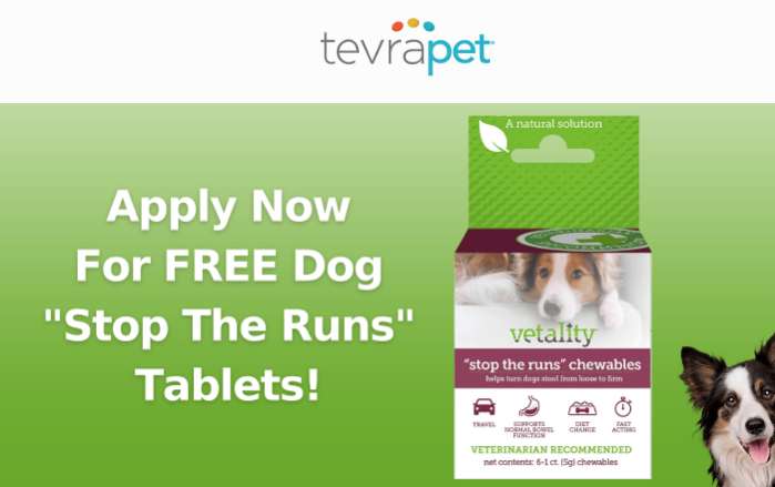 Fill out the short form to possibly score a FREE Vetality Dog Stop The Runs Chews Sample! Get fast-acting effective anti-diarrhea treatment for your dog right when they need it. If you qualify, your sample will arrive within 6 weeks.