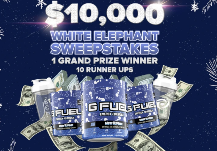 Now through December 31st, you can enter this G FUEL x White Elephant Sweepstakes for your shot at winning 1 off 10 prize packs! The grand prize winner will win $10,000. This is a one-time entry sweepstakes. Feel free to share your referral links in the comments section. Good luck!