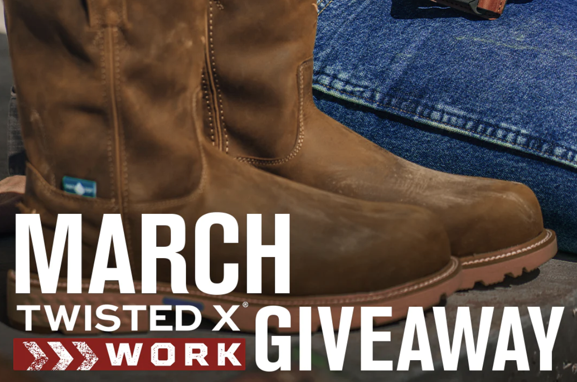 New sweepstakes alert! Enter this new Twisted X Work Footwear March Sweepstakes for your shot at winning a a pair of Twisted X Work Footwear shoes and a Leatherman Multi-Tool worth $400! This is a one-time entry sweepstakes, so just be sure to fill out the form by March 31st to be entered. Good luck!