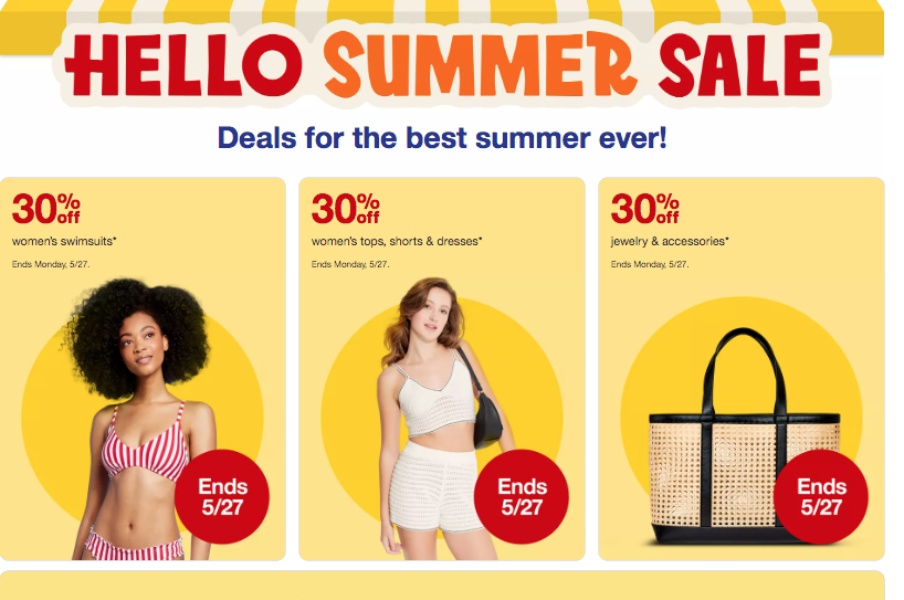Are you ready for summer? Through May 27th, Target is offering 30% off everything you need for fun in the sun! Shop for the whole family with great deals on swimsuits, sandals, shorts, dresses, and more. Shipping is free on orders of $35 or more!