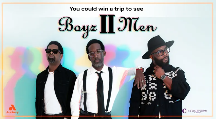 The lucky winner of this Audacy “Boyz II Men Live in Las Vegas” Sweepstakes will score a trip to a Vegas worth almost $2,000! Get your one-time entry in by June 9th. You may uncheck the e-mail subscription box. Good luck!