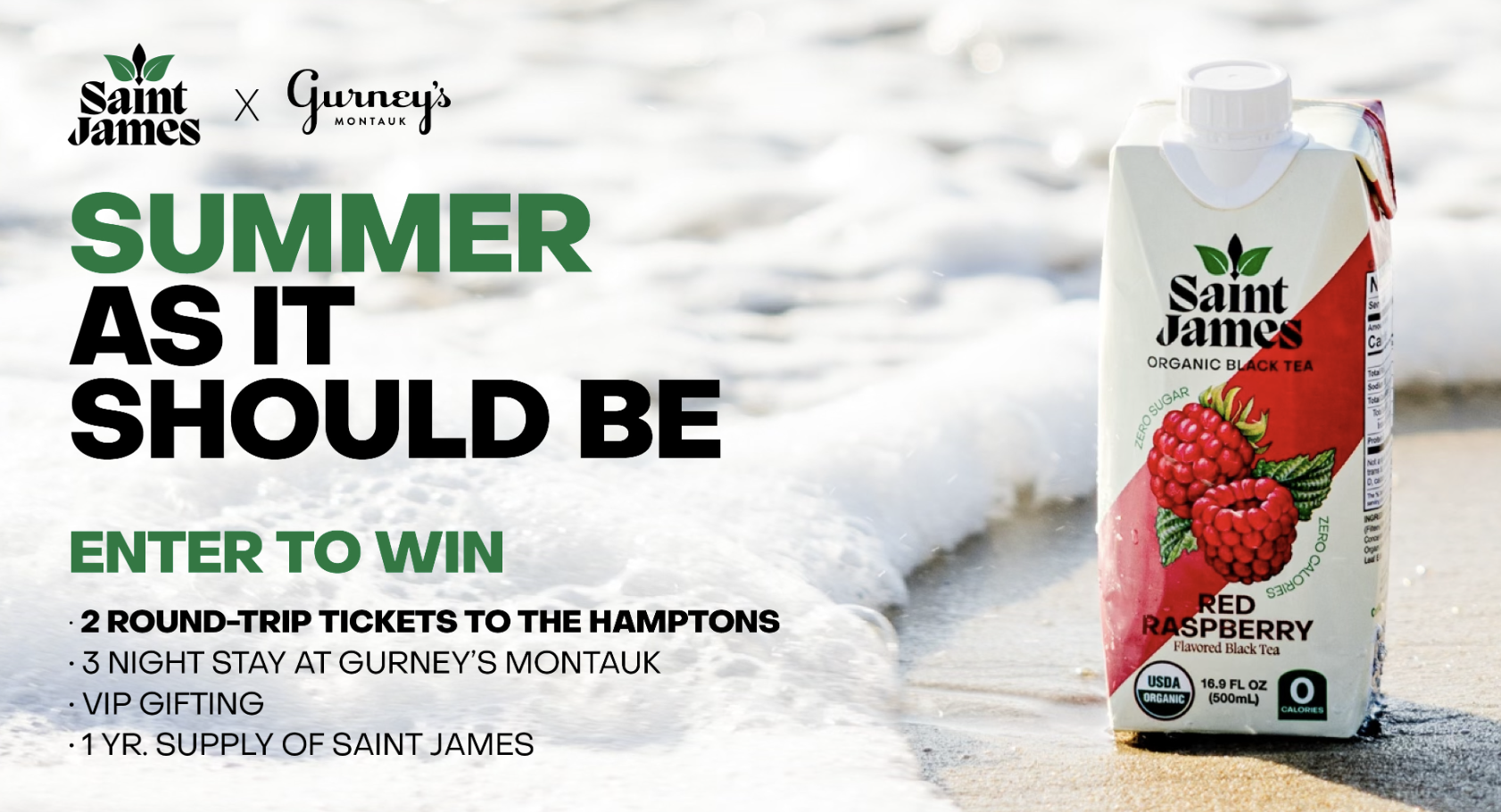 - Grand Prize: A trip for two to the Hamptons, including roundtrip tickets, a three-night stay at Gurneys, a Seawater Spa experience, dinner at Scarpetta, VIP gifting, and a one-year supply of Saint James Iced Tea (24 cases). (ARV: $7,800)