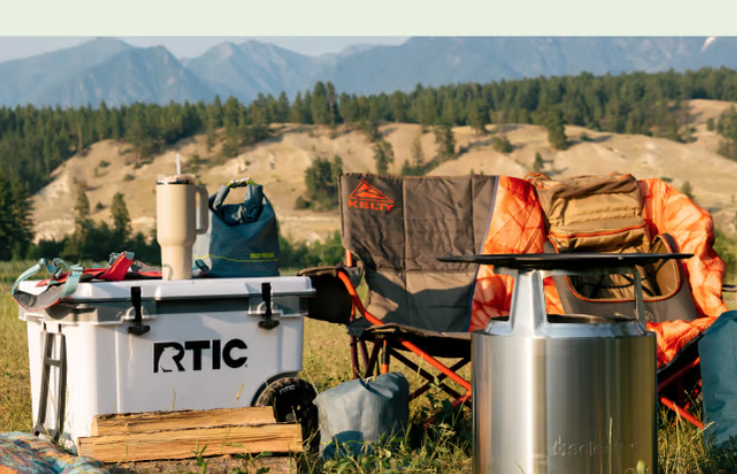- Kelty: Low Loveseat, Biggie Blanket, Litter G’tter, Ashcroft 3 Tent, and Camp Galley Deluxe