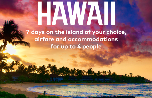 - A six (6) night, seven (7) day trip to an island of the winner’s choice in Hawaii