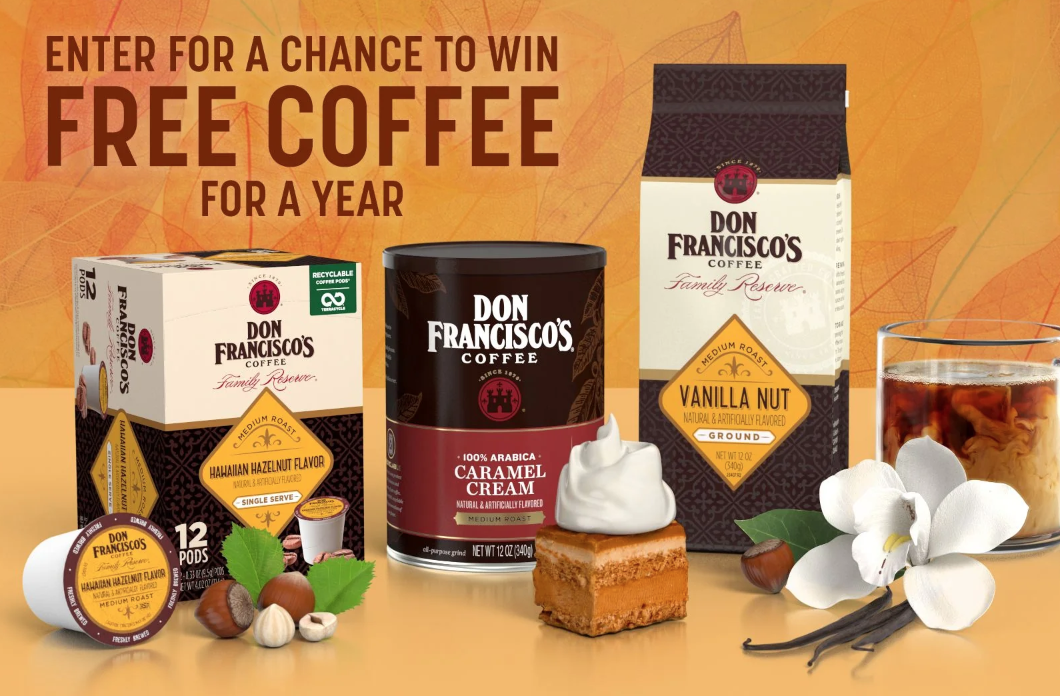 Wake up to a year of delicious brews with the Don Francisco’s Coffee For A Year Sweepstakes! One lucky winner will receive a year’s worth of coffee, plus an Ultimate Chemex Starter Kit. ☕🎉