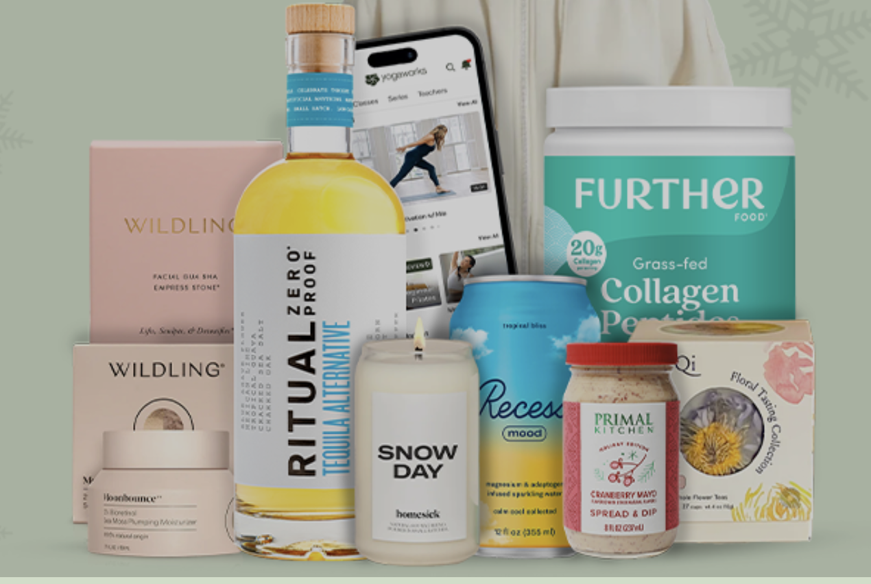 - (1) Grand Prize: Includes a YogaWorks App subscription for life ($299), YogaWorks apparel outfit ($166), Wildling skincare set ($200), Further Food Collagen bundle ($77), Recess Mood Sampler ($40), Ritual Zero Proof set and yoga mat ($120), The Qi Daily Ritual Set ($65), three Homesick candles ($90), and Primal Kitchen products with a $50 gift card ($60). Total ARV: $1,117.