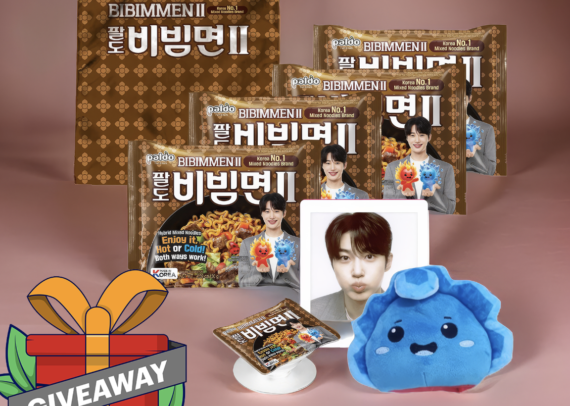 - (50) Winners: Each will receive a BIBIMMEN II Holiday Gift Set, including a limited edition mascot plush doll, autographed photo card, special phone grip, premium gym sack, and a 4-pack of Korea’s favorite mixed noodles.