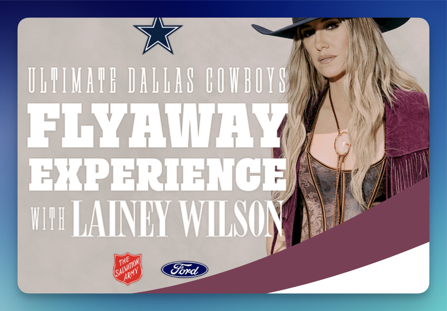 - Grand Prize (1): Two tickets to the Dallas Cowboys Thanksgiving game on November 28, 2024, and a meet-and-greet with Lainey Wilson (ARV: $599).