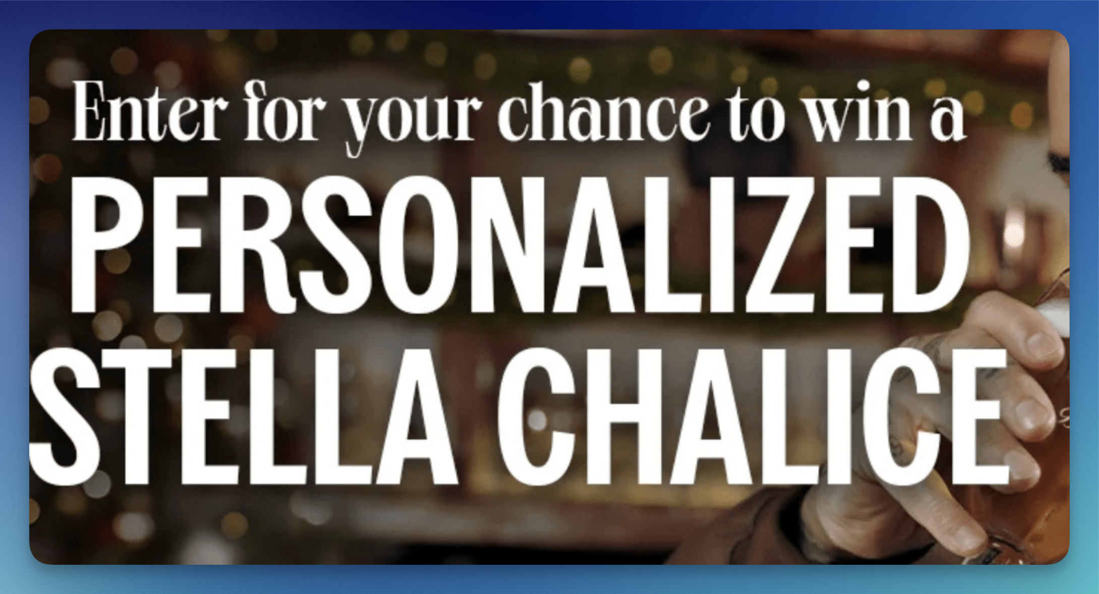 Raise a glass this holiday season! Enter the Stella Holiday Custom Chalice Sweepstakes daily for a chance to win a personalized Stella Artois chalice.