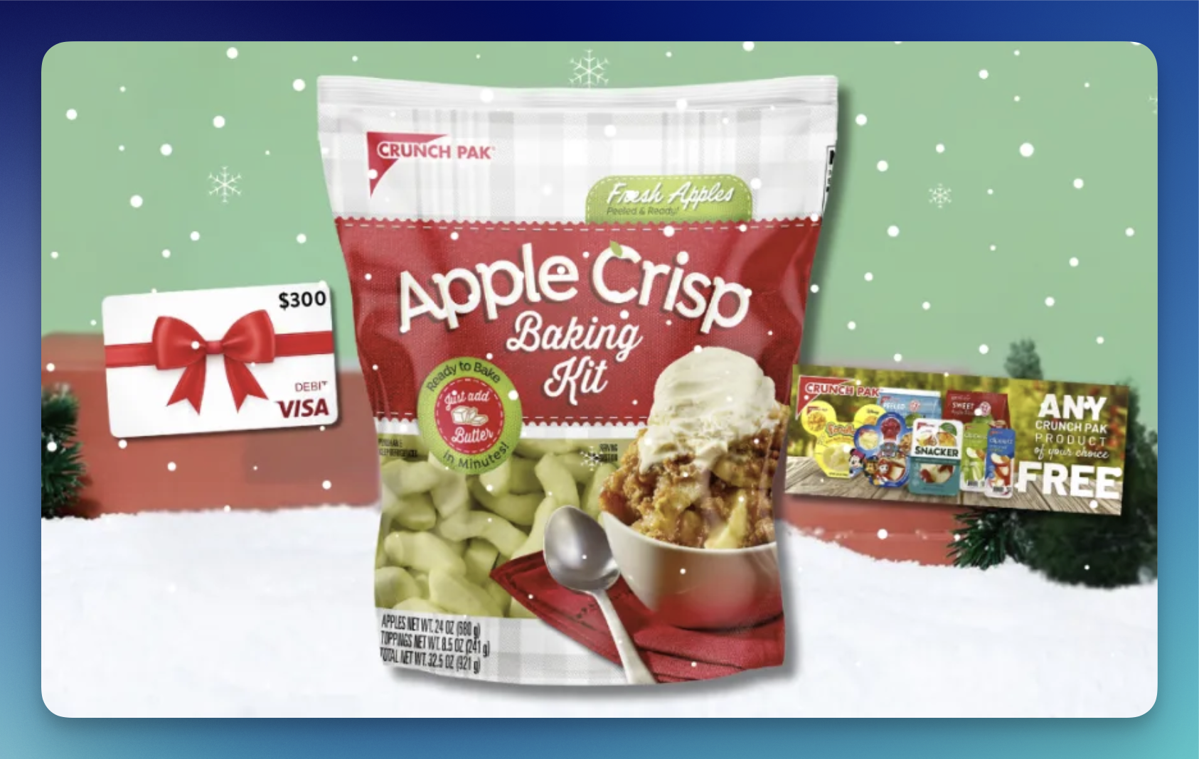 Add some sweetness to your holiday season! Enter the Crunch Pak Sweet Holiday Sweepstakes for a chance to win a $300 Visa Gift Card, apple crisp kits, and more delicious prizes! Feel free to share your referral links in the comments section. Good luck!