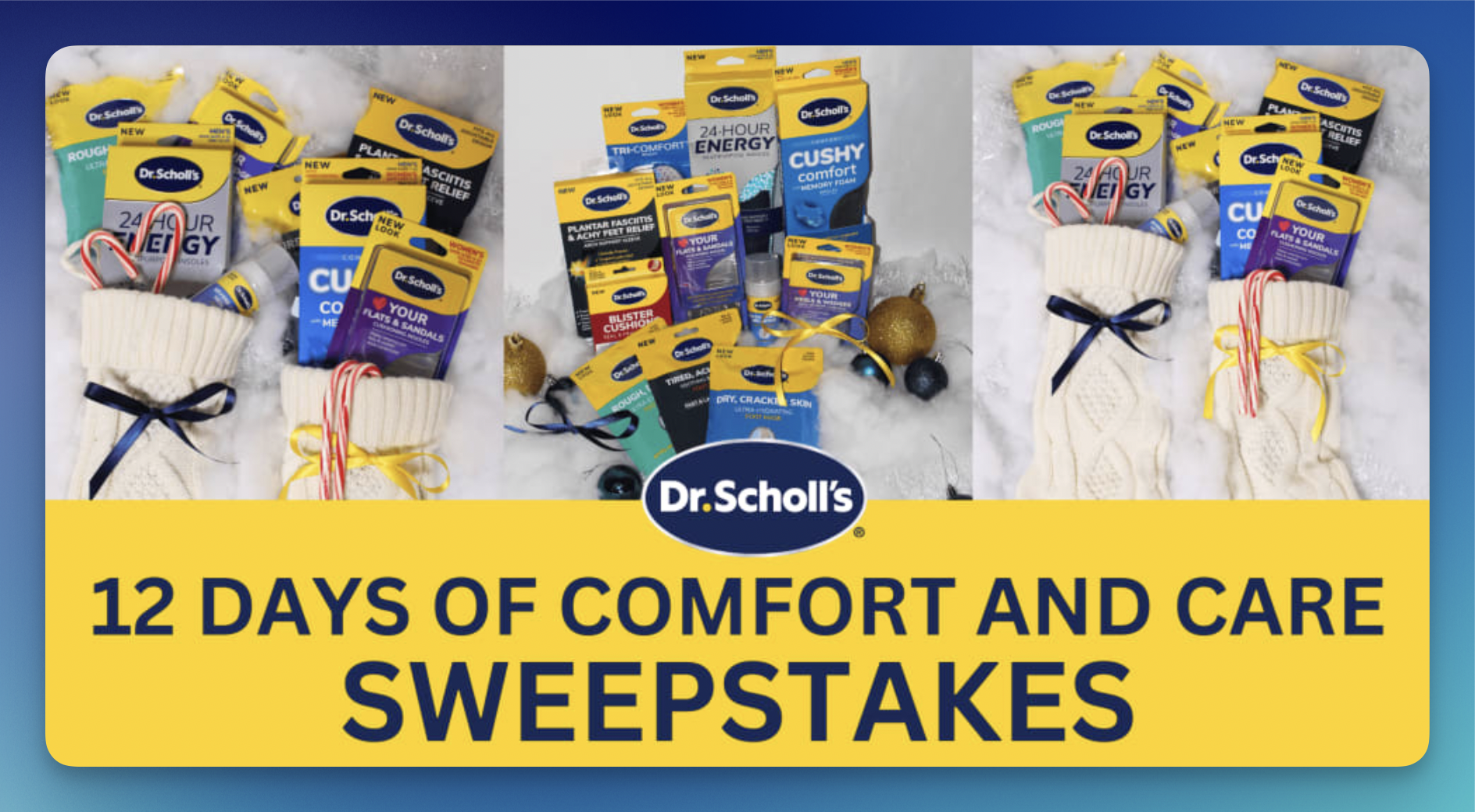 Enter now for a chance to win the Dr. Scholl’s “12 Days Of Comfort” Sweepstakes! Pamper your feet with the ultimate comfort and care bundle!
