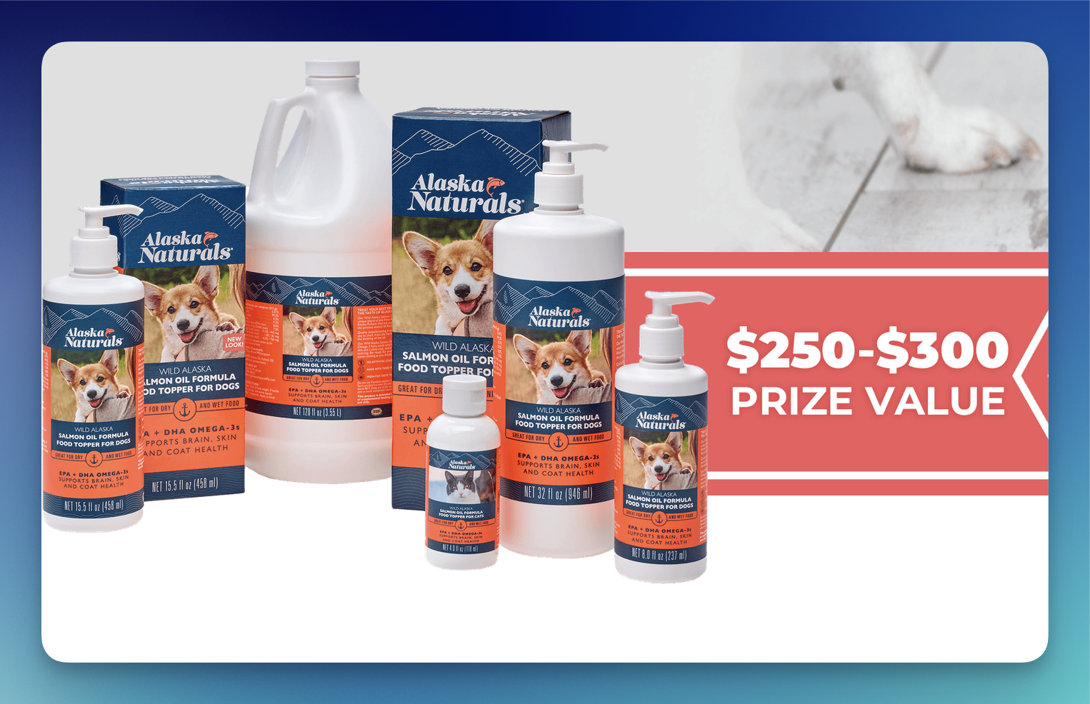 Treat your pet to a year of goodness by entering the Alaska Naturals Sweepstakes for a chance to win a supply of premium salmon oil!