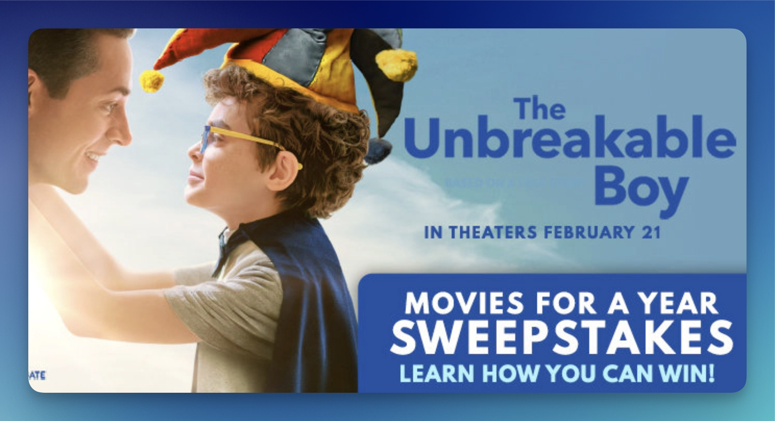 Win a year of movie nights with the Unbreakable Boy Movie-For-A-Year Sweepstakes—52 winners will score free movie tickets!