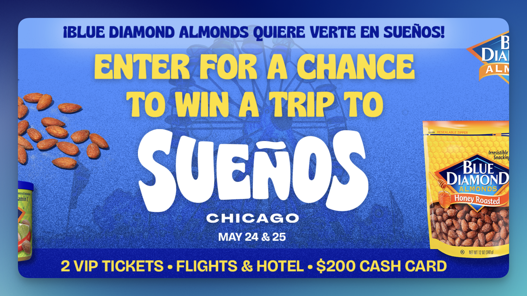 Get ready for a VIP festival experience with the Blue Diamond Growers Chicago Festival Sweepstakes — win a trip for two to the Sueños Festival in Chicago!