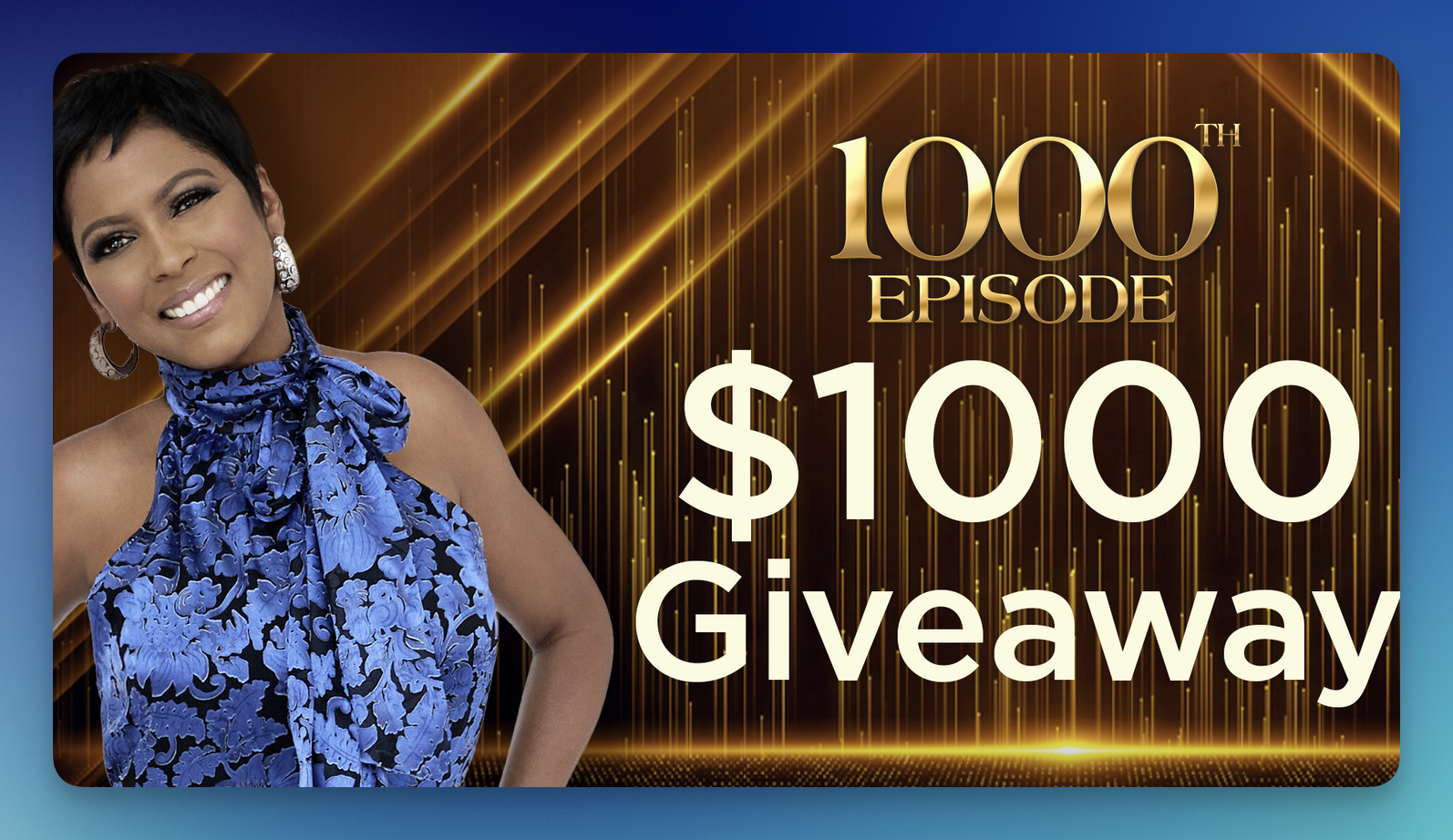 Celebrate a TV milestone with the Tamron Hall Show 1000th Episode Sweepstakes—one lucky viewer will win a $1,000 prepaid gift card!