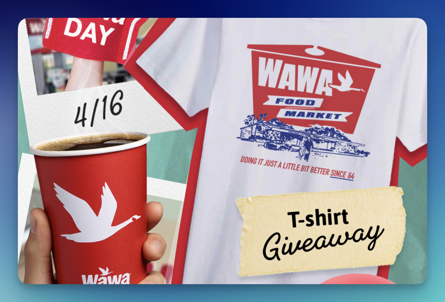 (200) Winners: Each will receive a Wawa t-shirt (ARV $11.50 each)