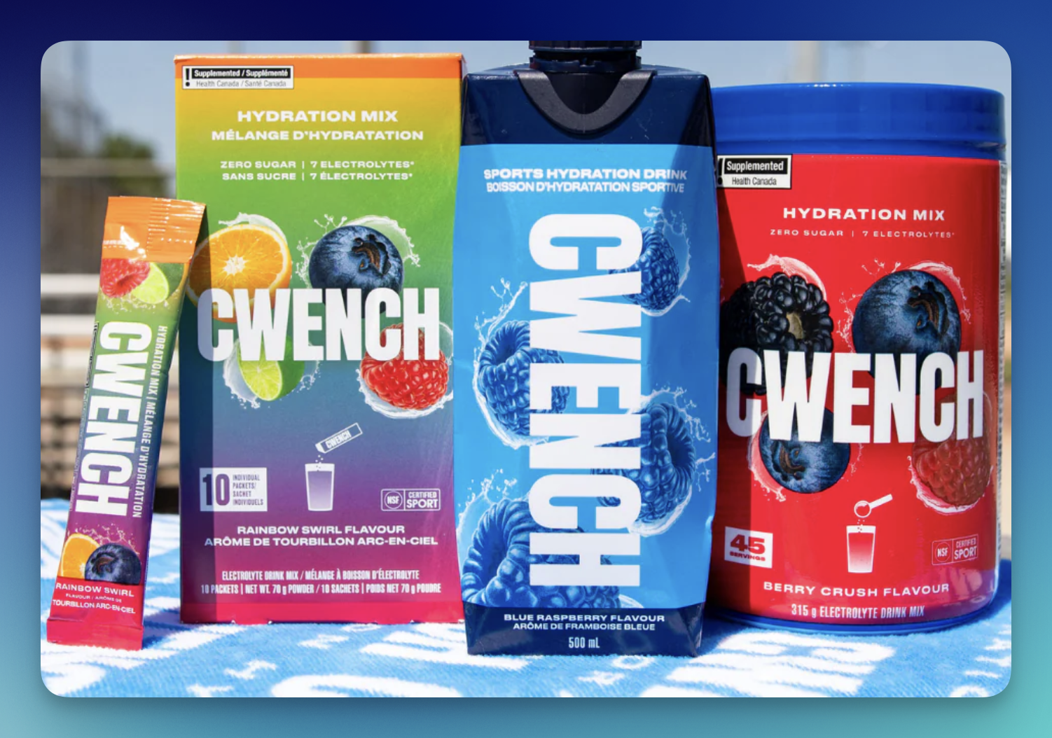 (5) Winners will each receive a Cwench bundle including a 12-pack of sports drinks, two 10-ct hydration mixes, and one 45-ct hydration mix