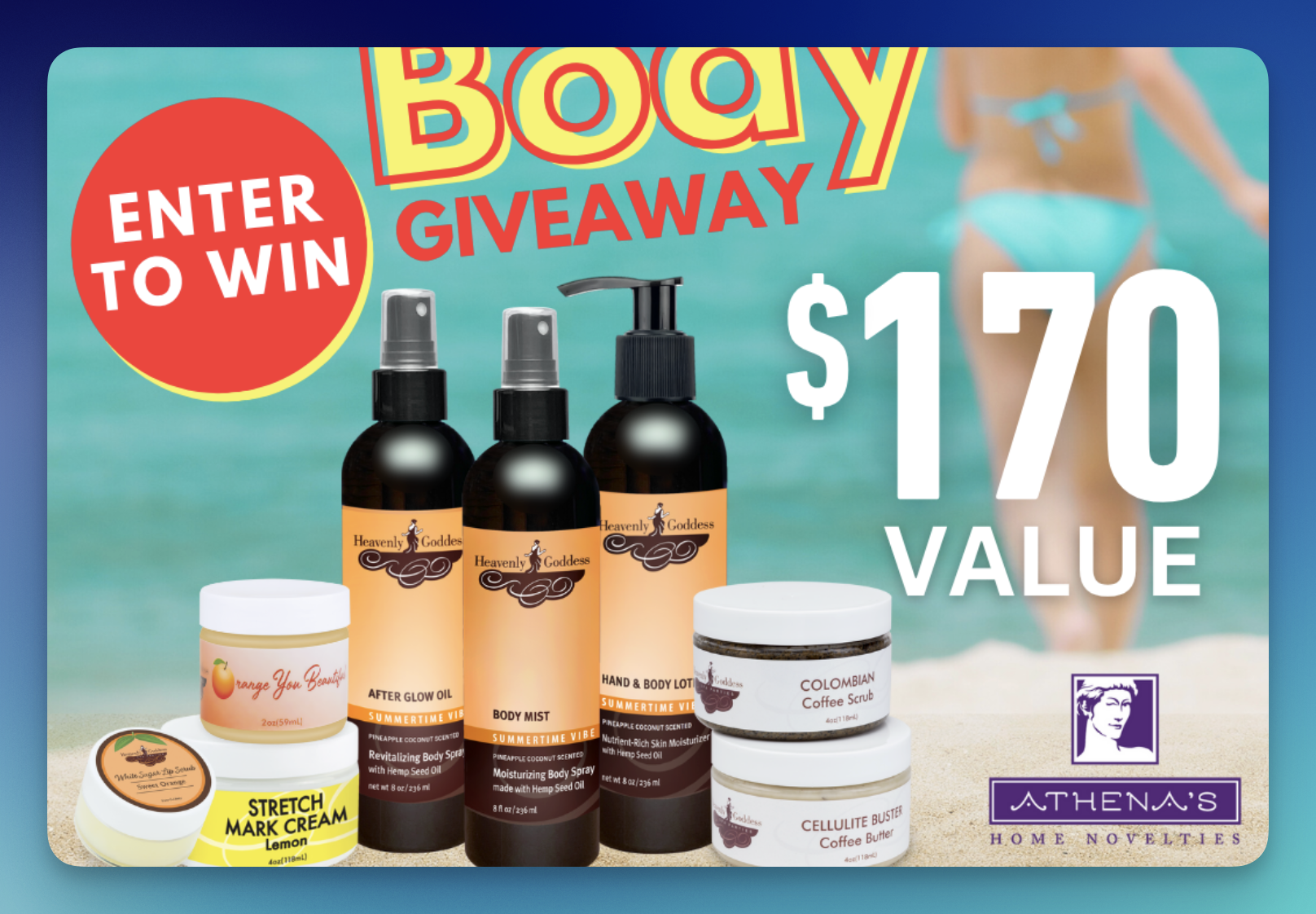 Glow up this season with the Athena’s Home Novelties Beach Body Giveaway—enter daily for your chance to win a summer-ready self-care prize pack!