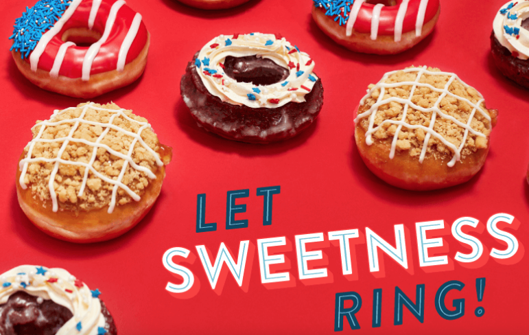 Reminder! Stop by Krispy Kreme on July 4th wearing red, white, and blue to get a FREE original glazed doughnut! Limit one per person. Enjoy! I’ll be sure to remind you all then.