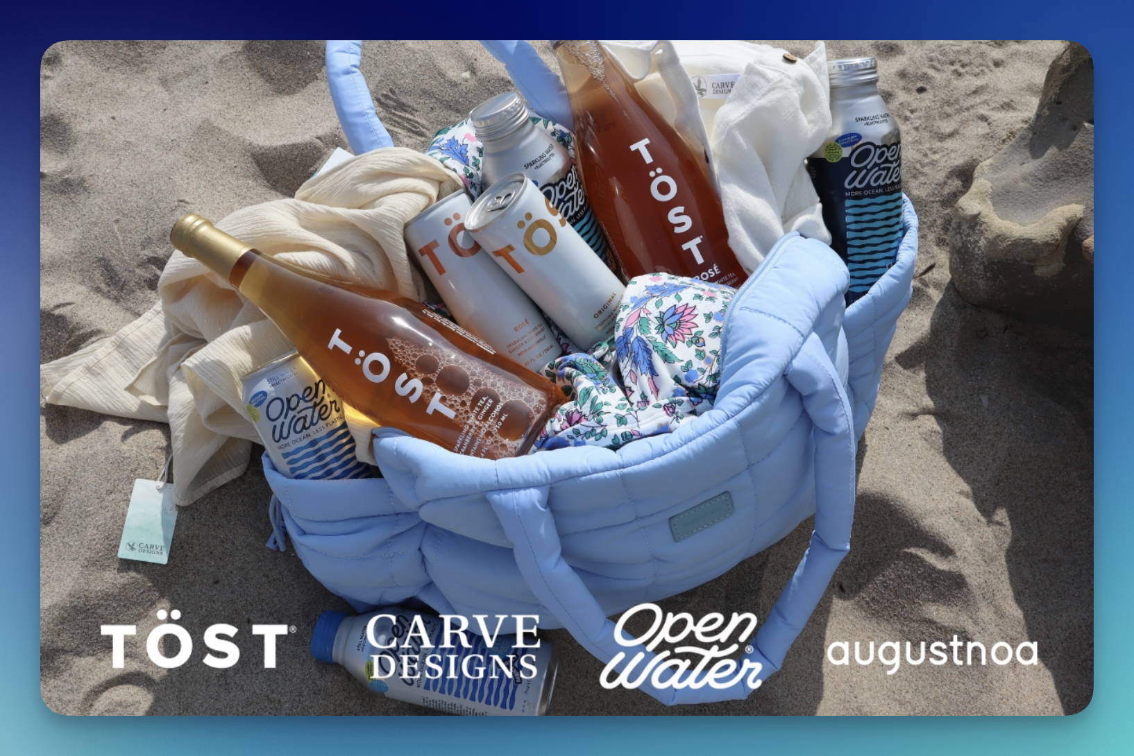 - $250 gift cards from each: TÖST Beverages, Carve Designs, Open Water, and Augustnoa Bags