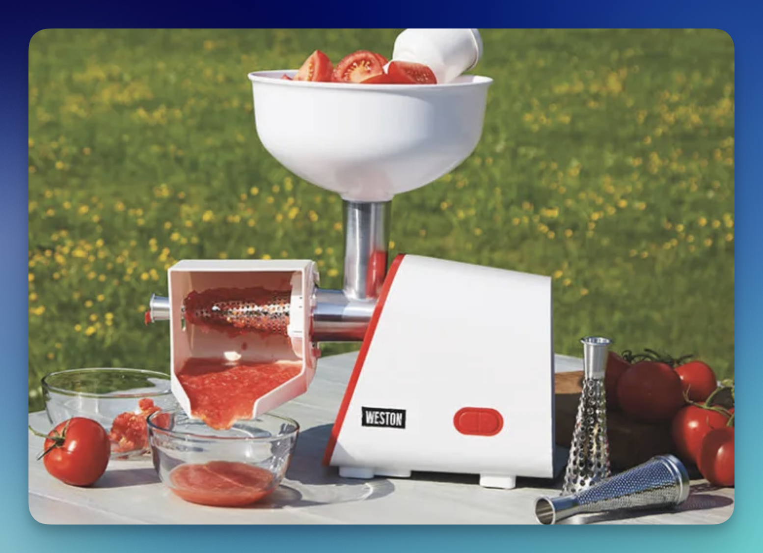 Get ready for sauce season with the Weston Deluxe Electric Tomato Strainer Sweepstakes — perfect for home canners and garden lovers alike!