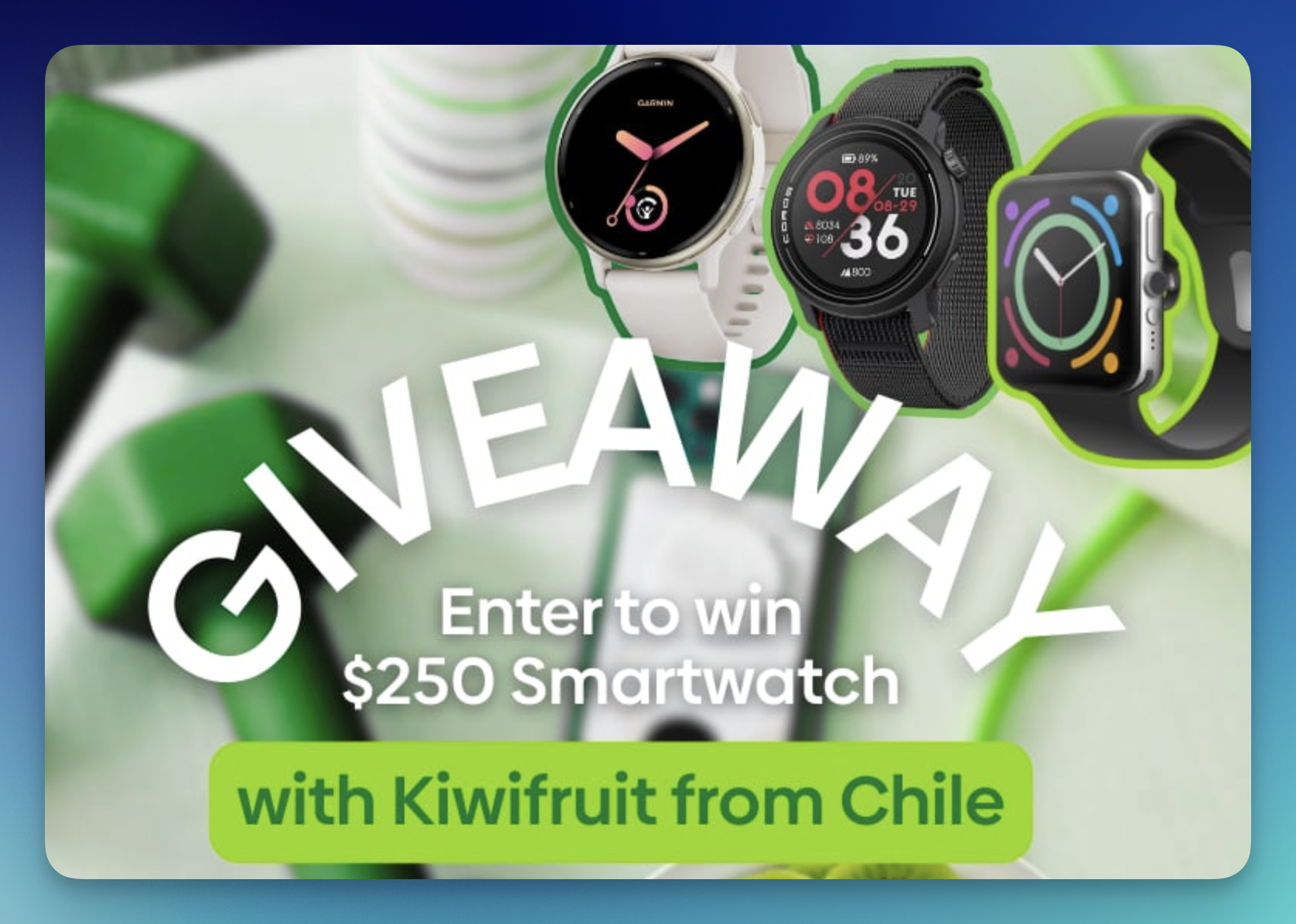 Stay energized and on track with the Workout with Kiwifruit From Chile Giveaway — one lucky winner will score a smartwatch perfect for tracking those gains!