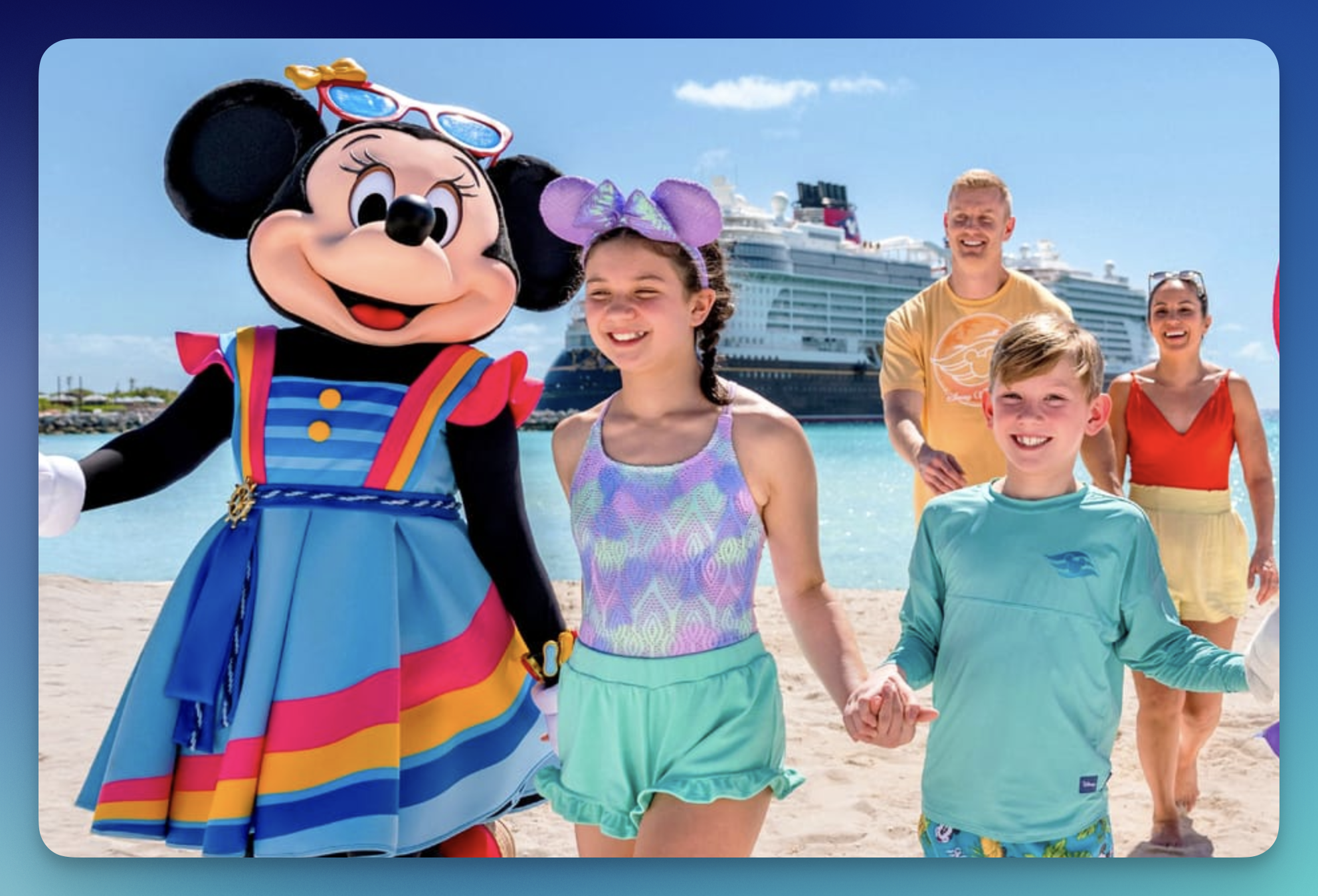 (1) Grand Prize: A five-night cruise for four aboard the all-new Disney Destiny during the Disney Vacation Club “First Wave” Sailing (Nov. 28–Dec. 3, 2025). Prize includes an Oceanview Stateroom (max occupancy 4), all meals onboard (excluding specialty/fine dining), prepaid gratuities, and taxes/fees/port expenses. ARV $4,926. Transportation to Fort Lauderdale, FL not included.