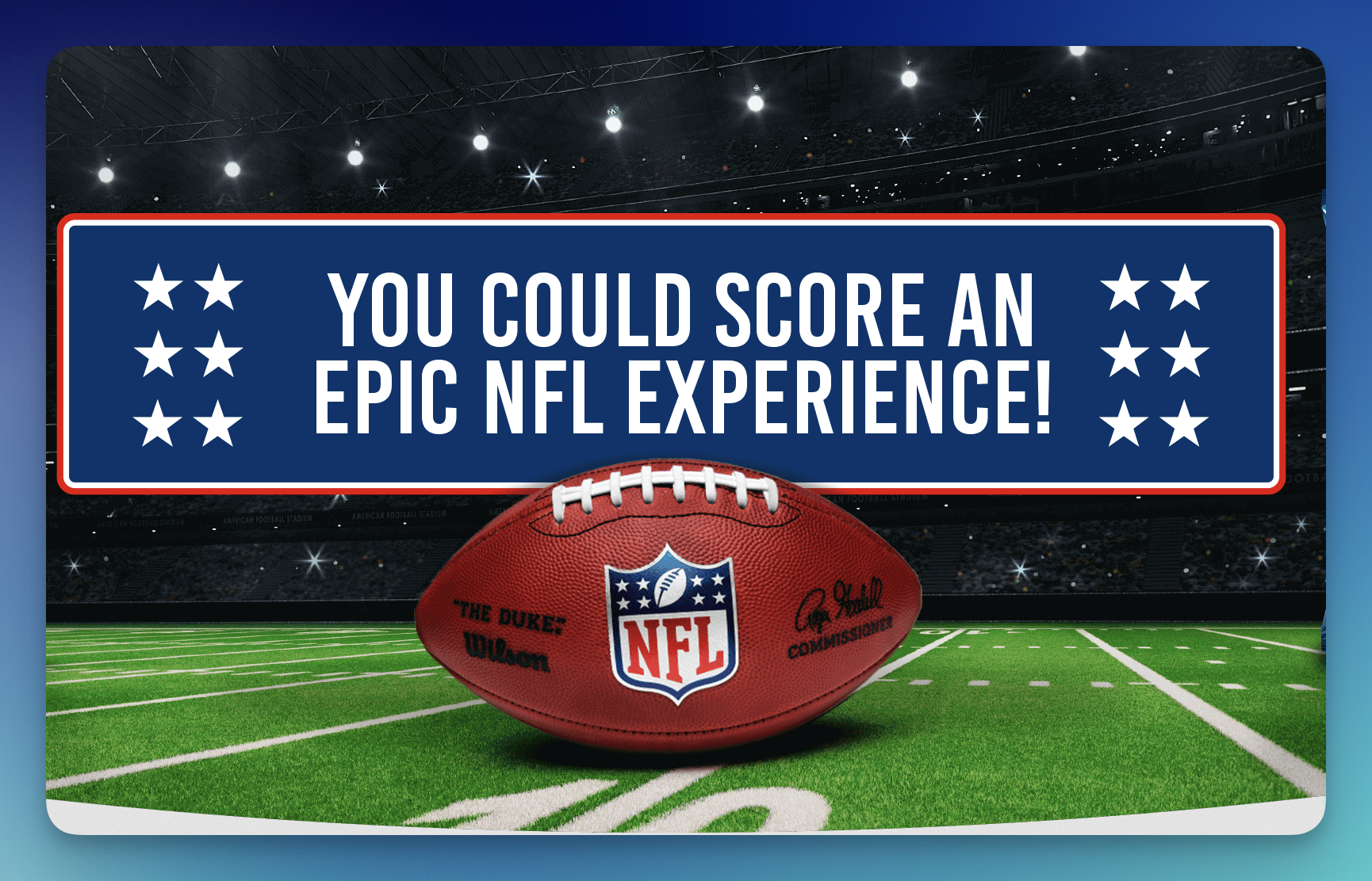 Weekly & Grand Prizes include: Epic NFL fan experiences for your chosen team, tickets to Super Bowl LX, access to the 2026 Pro Bowl Games, autographed NFL gear, $250 NFLShop.com gift cards, and more