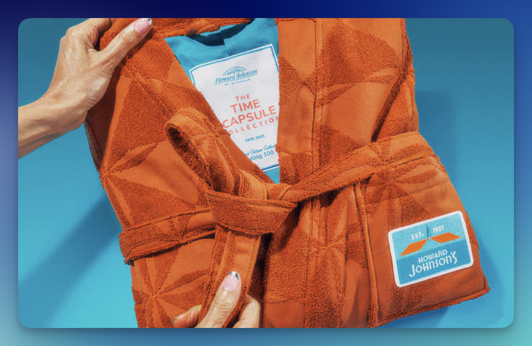 (7) Winners will each receive a “HoJo Time Capsule Collection” including a logo robe, hat, amenity pouch, clam soap, and ice cream bucket, plus 15,000 Wyndham Rewards points (total ARV: $402.75 each; total ARV of all prizes $2,819.25)
