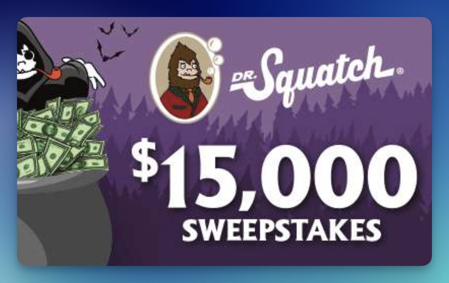 Go big this Halloween season in the Spirit Halloween $15,000 Dr. Squatch Sweepstakes, where 1 massive cash prize is up for grabs!