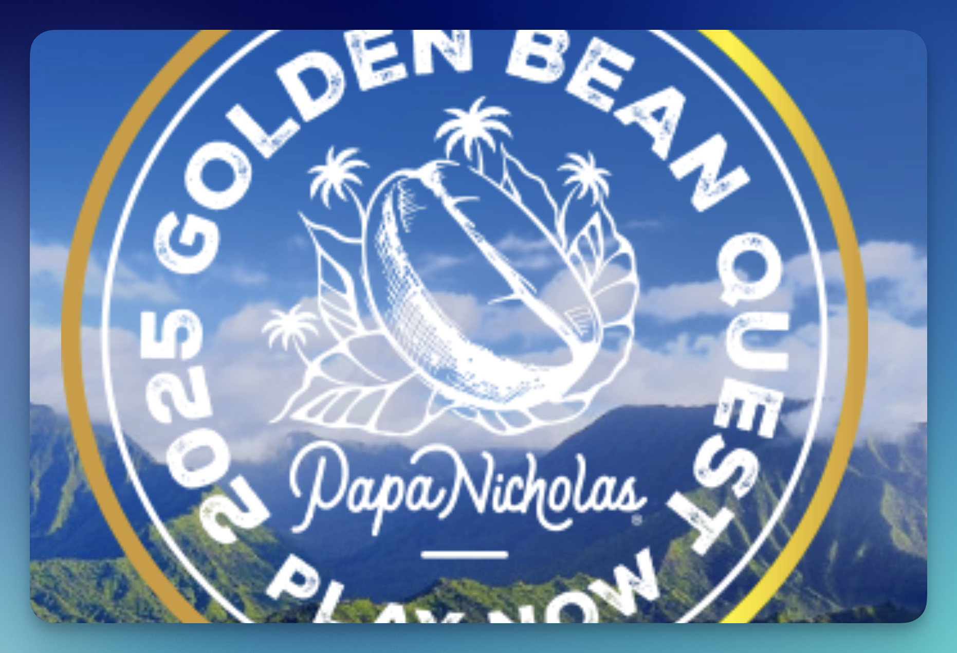 Coffee lovers, don’t miss the PapaNicholas “Golden Bean Quest” Instant Win Game with 827 total winners scoring mugs, gift cards, brewers, and even a trip to Hawaii!