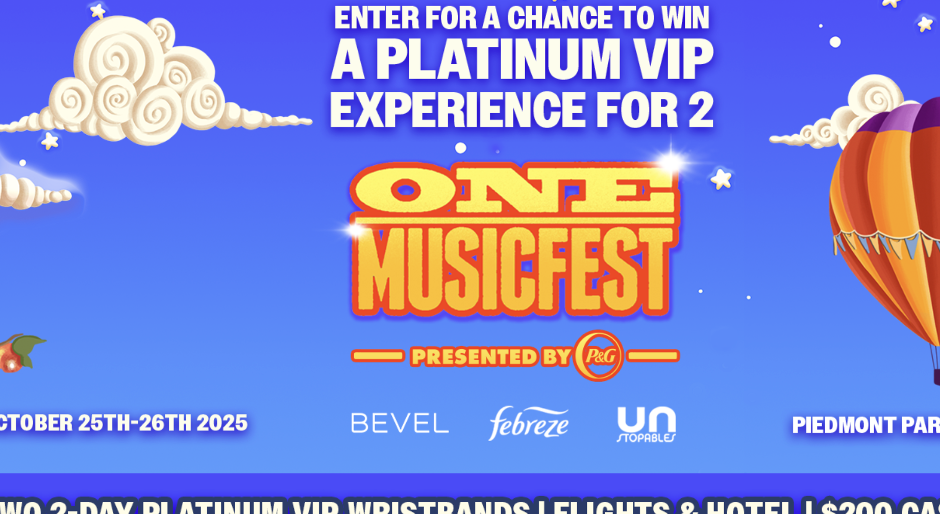 (1) Grand Prize: 4-day/3-night trip for two to the One Musicfest Festival in Atlanta, GA (Oct 25–26, 2025) including airfare, 3-night hotel stay, two 2-day Platinum tickets, and a $200 gift card for ground transportation (ARV $6,798)