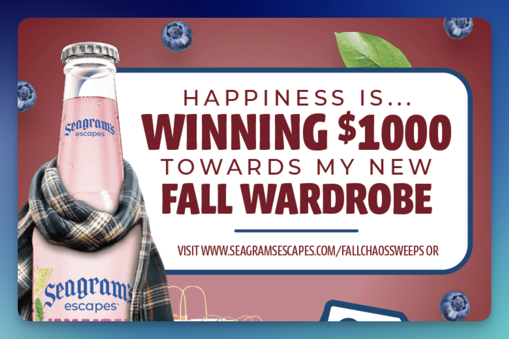 Celebrate the season with the Seagram’s Escapes Fall Sweepstakes where 5 winners will each take home $1,000 cash!