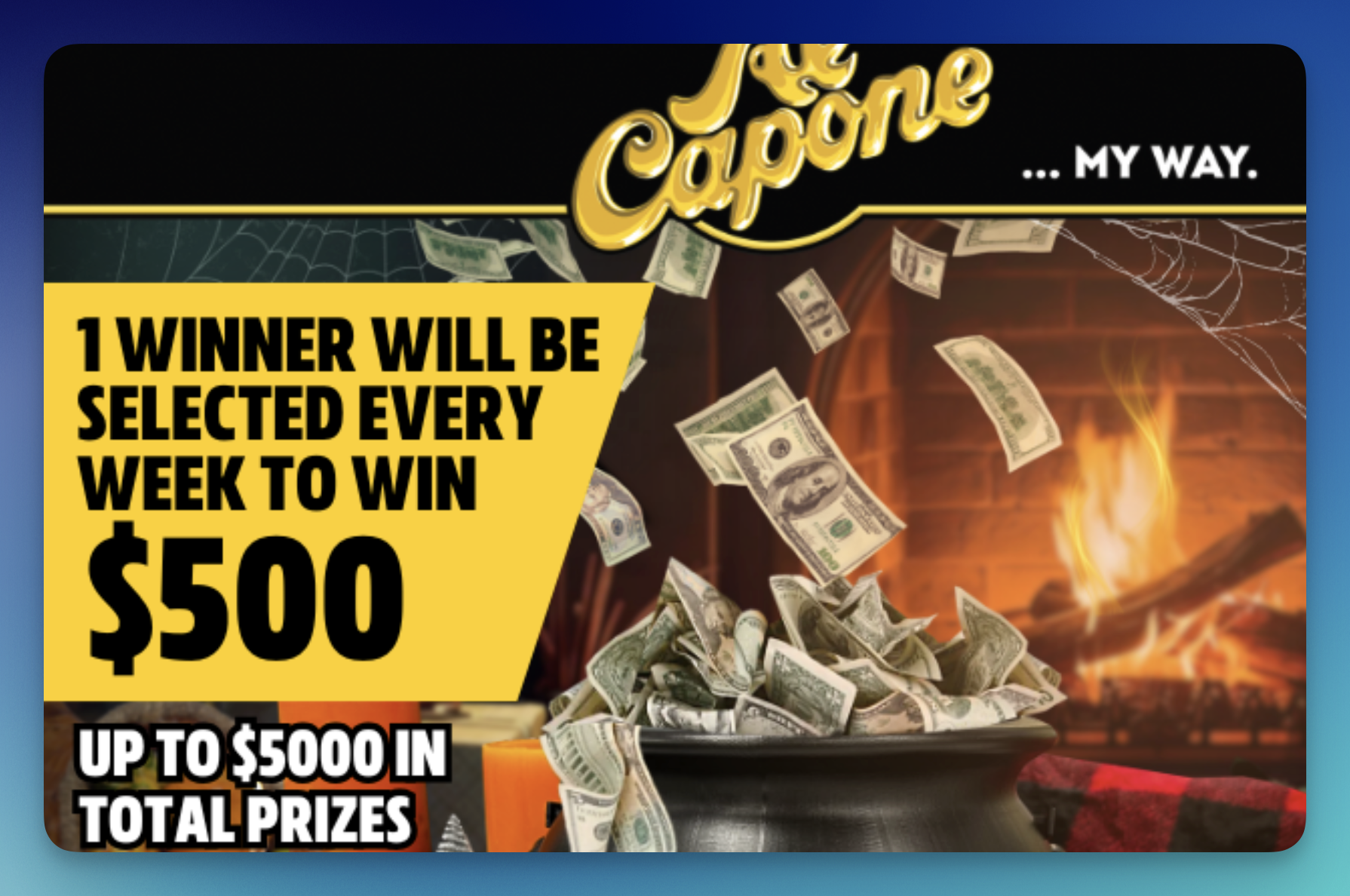 Spread some cheer this season with the Al Capone “Seasons of Giving Cash” Sweepstakes — ten lucky winners will each take home $500 in cash!