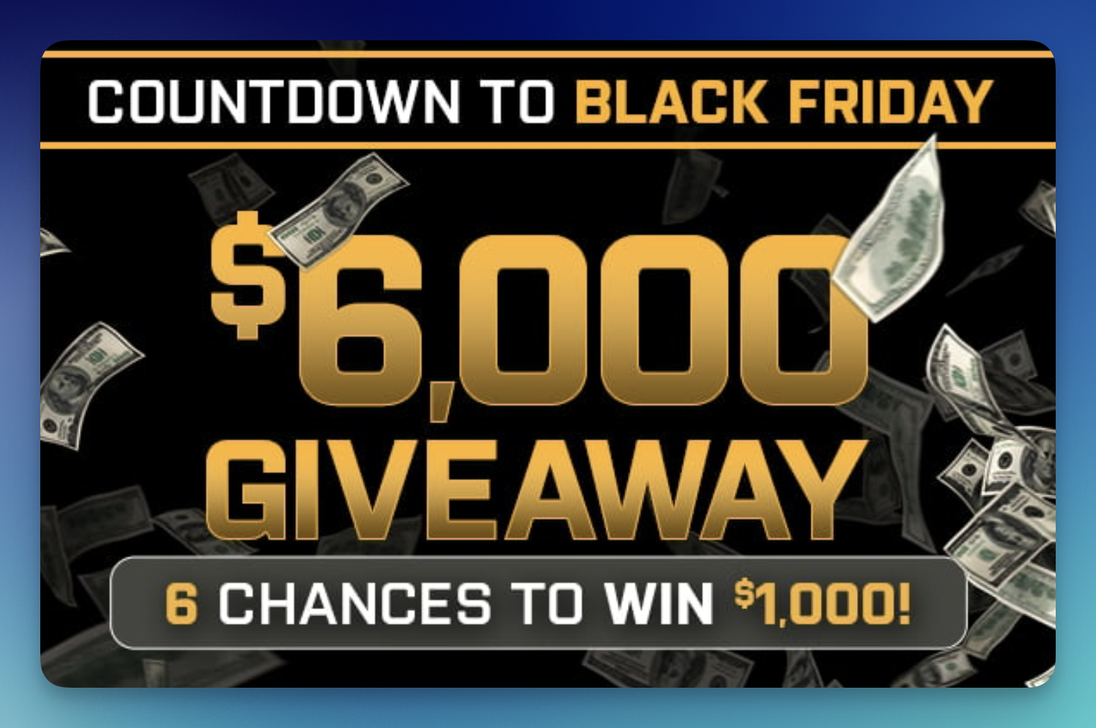 (6) Winners will each receive a $1,000 AmericanMuscle.com gift card.