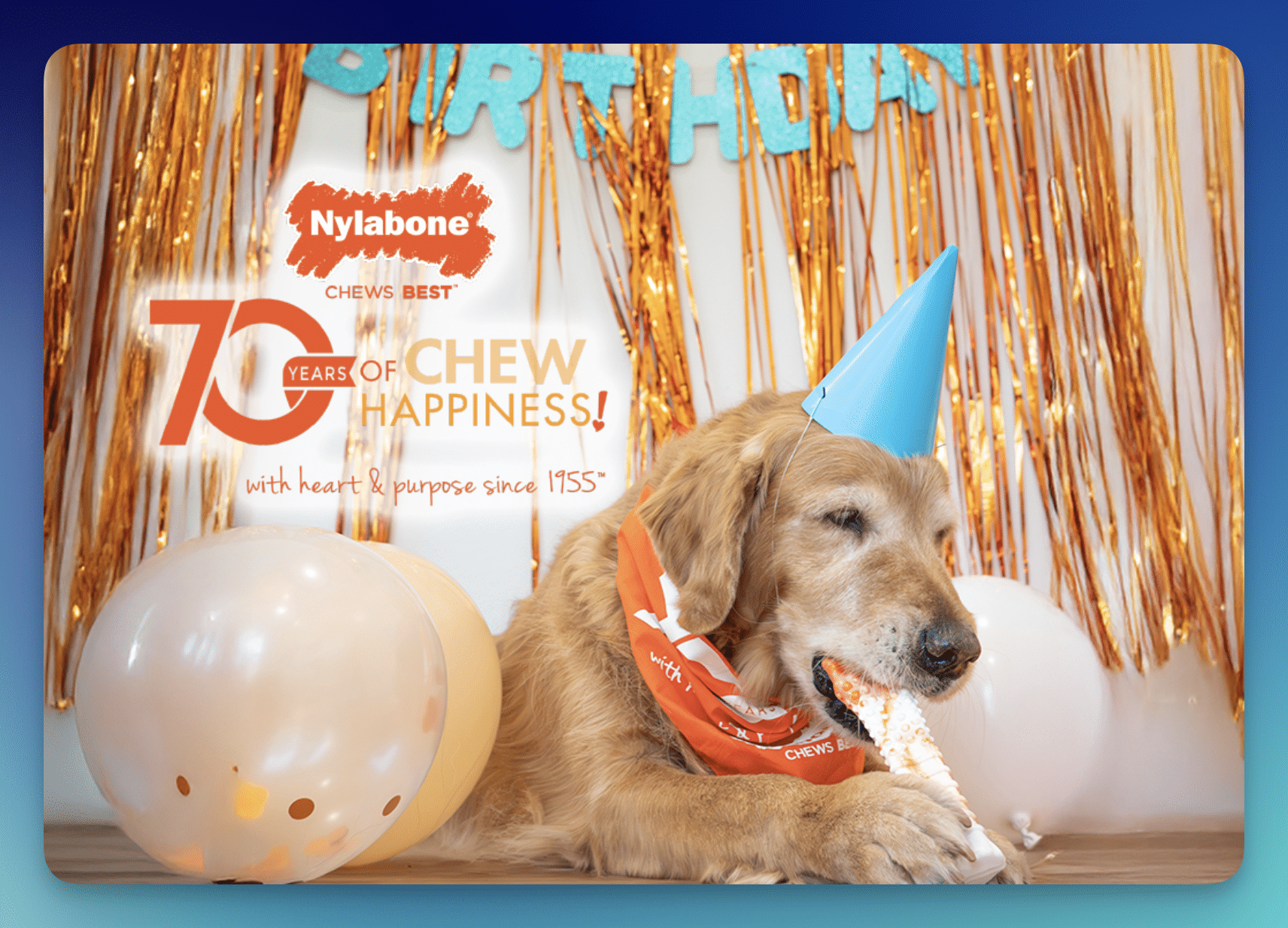 Celebrate with your pup in style during the Nylabone 70th Birthday Chew Toy Sweepstakes — five lucky winners will snag a special limited-edition birthday chew toy!
