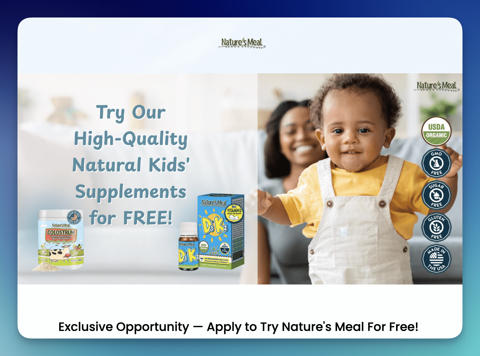 Nature’s Meal is launching a new Nature’s Meal Supplements Product Testing Program, which gives you the opportunity to test and review new their latest product! Applications are only open for a limited time, so be sure to apply now if you are interested.