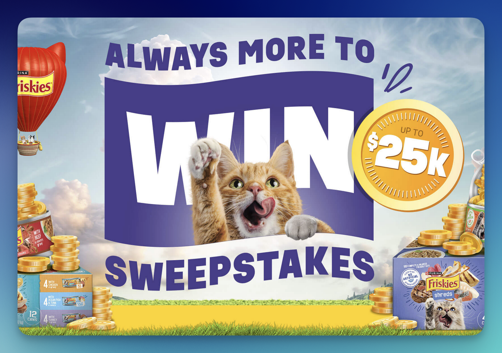 Get your paws on some prizes in the Purina Friskies “Always More to Win” Sweepstakes—one cat lover will snag $25,000, plus weekly winners score Friskies prize packs!