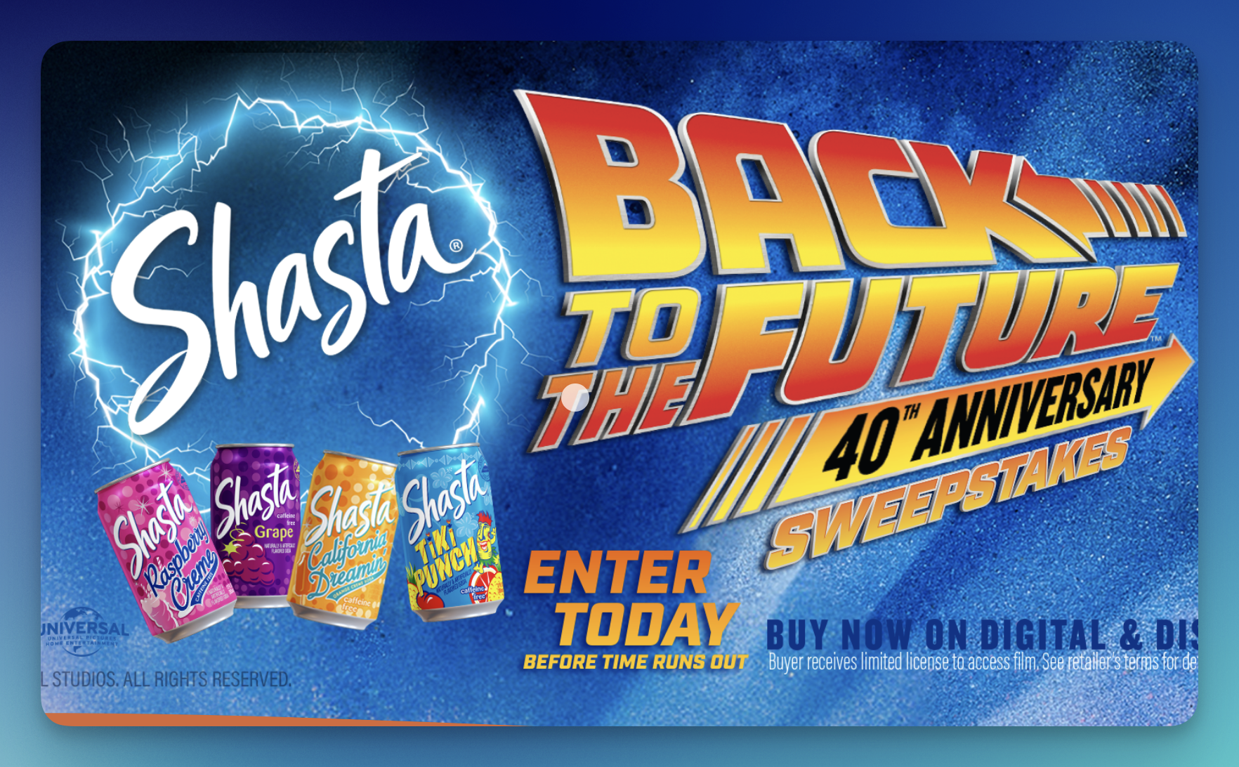 Great Scott! The Shasta “Back to the Future” Sweepstakes is here to celebrate 40 years of movie magic — with nostalgic prizes that’ll take you on a fizzy trip through time!
