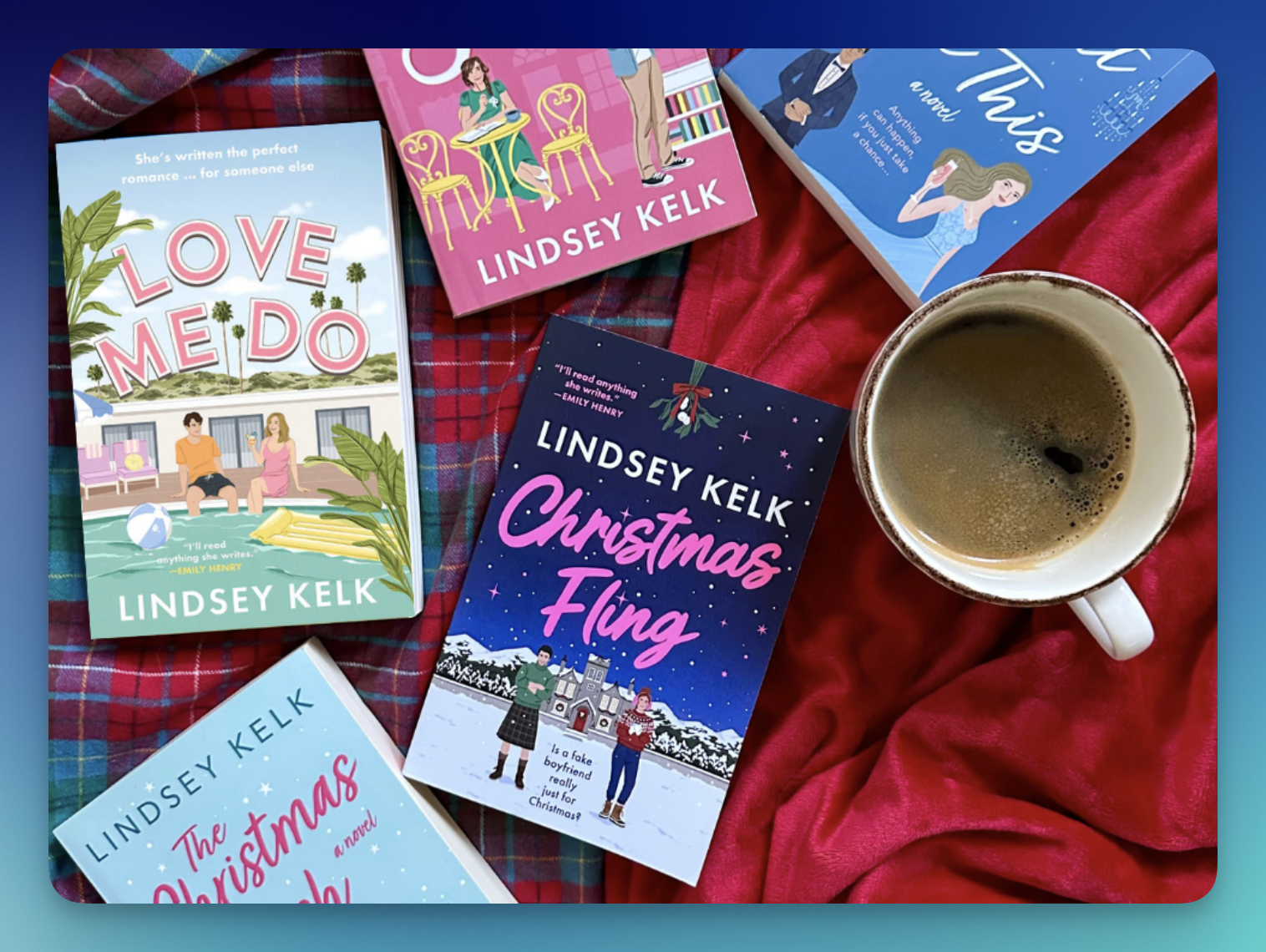 Get cozy with a festive reading stack in the Lindsey Kelk’s Holiday Shelf Sweepstakes — one lucky winner will receive five holiday romance novels and a warm tartan blanket!