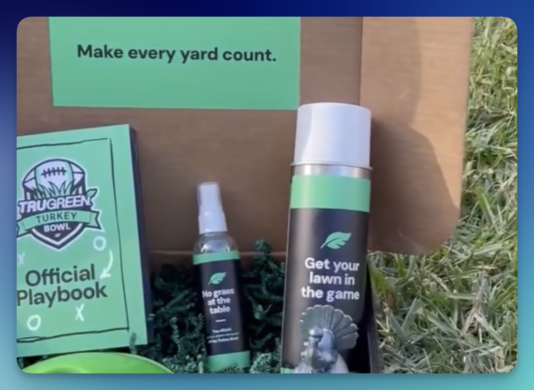 1 Turkey Bowl Kit including: Grass Stain Remover, Lawn Safe Turf Paint, Field Marker Cones, Official Lawn of the Turkey Bowl Flag, Lawnbardi Trophy, and the TruGreen Turkey Bowl Playbook