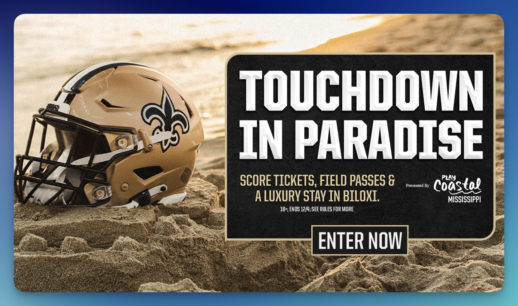 A fun football getaway is up for grabs with the New Orleans Saints “Touchdown to Paradise” Sweepstakes — perfect for fans who want a weekend packed with game-day action and a Gulf Coast stay!